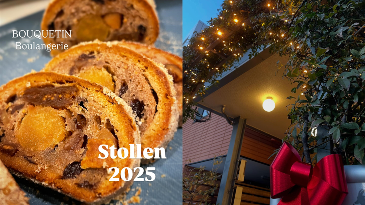 フランス産小麦トラディション・フランセーズ、国産発酵バター、ドイツ・リューベッカのマジパン・ローマッセなどこだわりの材料を贅沢に使用して作りました。発酵には、今年育て始めた爽やかな香りのホップの天然酵母を中心に自家製の天然酵母を4種類と微量のイーストを使用しています。20時間ほど長時間発酵させることで、複雑な香りや旨みを生み出しています。